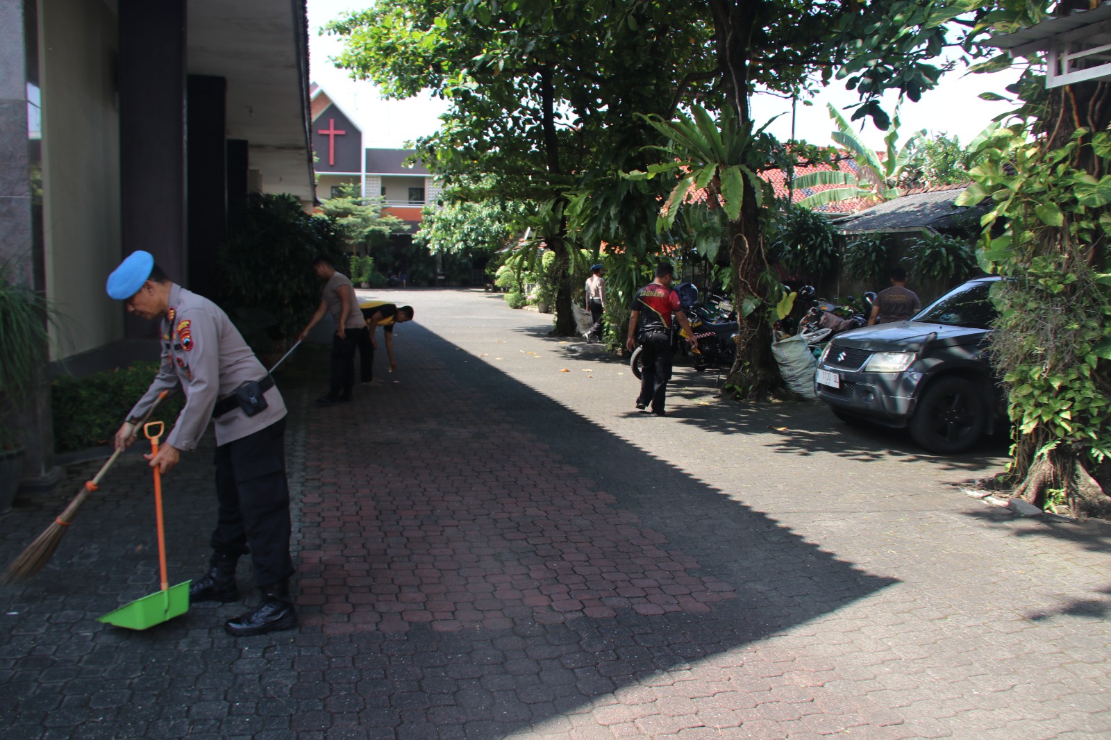 Kegiatan yang berlangsung dengan penuh semangat dan kekeluargaan ini melibatkan sejumlah personel Polres Kudus. Mereka bersama-sama membersihkan area dalam dan luar gereja, membantu merapikan fasilitas ibadah, serta melakukan pengecatan ringan dan penataan lingkungan gereja.